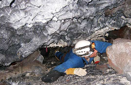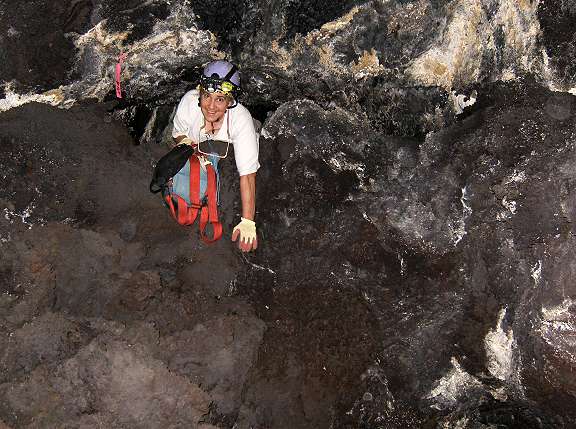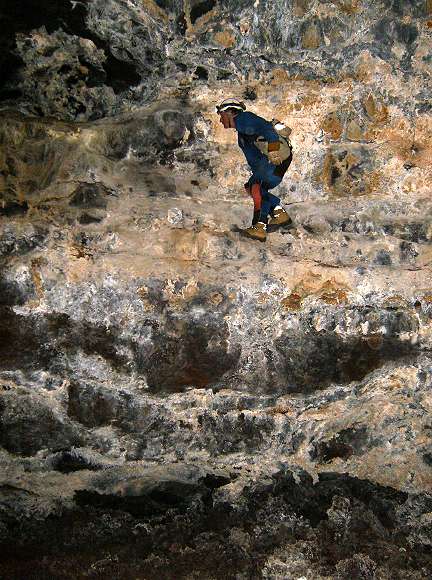 Carl walking along a narrow ledge in the main passage in "Holy Cow" gives a great sense of the size of this tube.